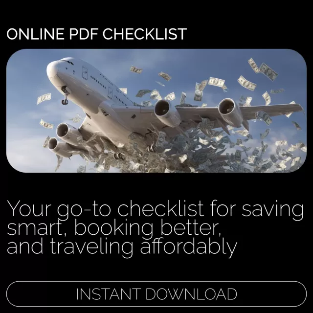 Download Your Ultimate Travel Savings Checklist: Cut Costs, Live Large today and start planning the trip you’ve been dreaming about — for less. Your next adventure begins the moment you hit purchase.